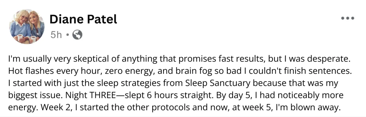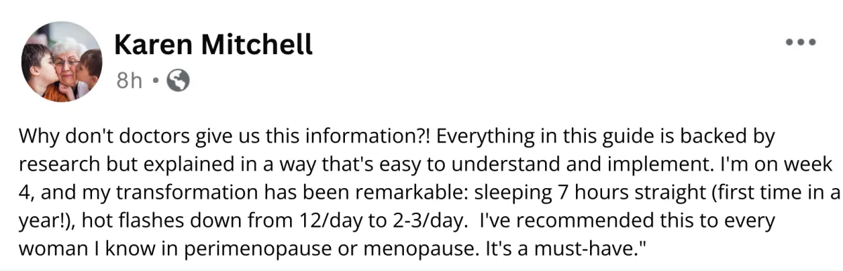 Created by Sarah Johnson – a fellow menopausal woman, dedicated researcher, and wellness advocate who has helped more than 38,000 women find relief from hot flashes, night sweats, brain fog and more…