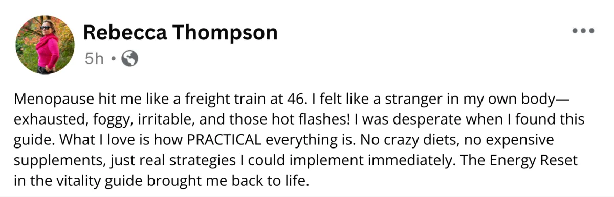 Your energy levels will soar, allowing you to enjoy your life, work, and relationships again. Menopause fatigue won't dominate your days anymore.